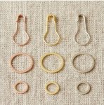 - 6 each gold, silver, copper opening stitch markers - US 11 / 8 mm needles or smaller